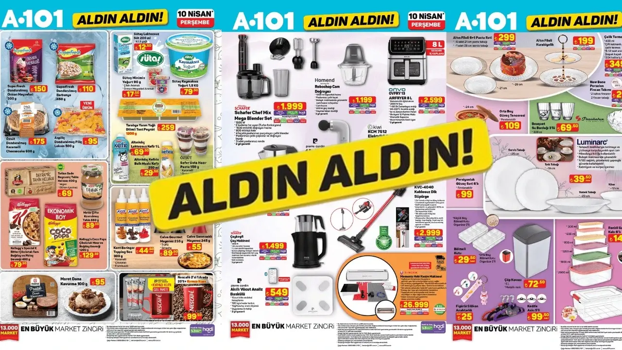 A101, 10 Nisan 2025 aktüel kataloğunda teknoloji, bebek ürünleri ve ev eşyalarından elektronik mutfak ürünlerine kadar geniş bir yelpazede indirimli ürünler sunacak. Yeni fırsatlar ve cazip fiyatlar bu hafta mağazalarda yerini alacak.
