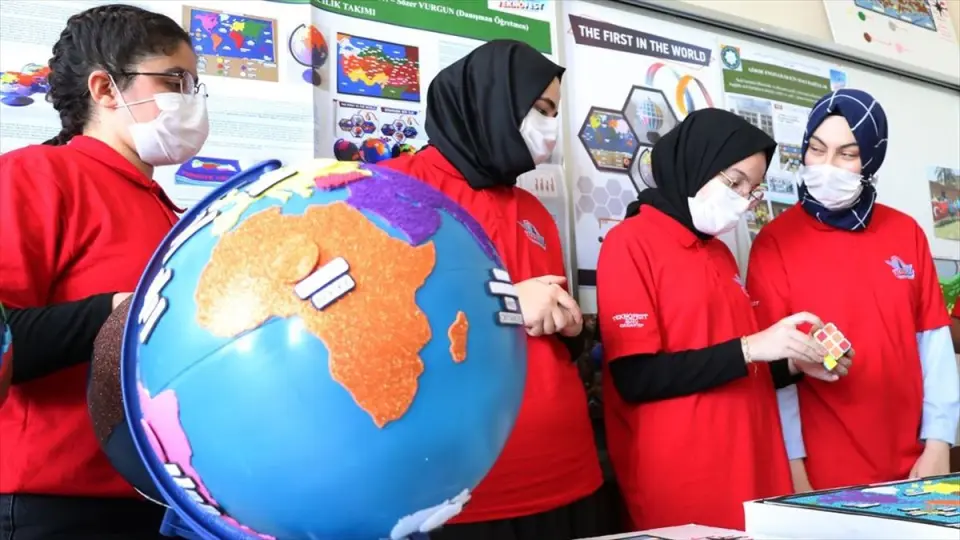 MANİSA (AA) - Manisa Şehit Fatih Kalu Kız Anadolu İmam Hatip Lisesi öğrencilerinin, geliştirdikleri sesli haritalarla Afrika ve ABD'ye uzanan başarısı TEKNOFEST 2020'den de ödülle d&...