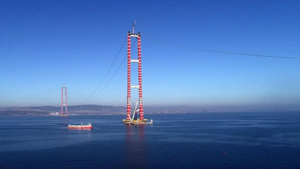 Hizmete girdiğinde dünyanın en büyük orta açıklıklı asma köprüsü unvanını alacak, renkleri, figürleri ve diğer özellikleriyle özgün mimariye sahip 1915 Çanakkale Köprüsü'nün inşası sürüyor.
