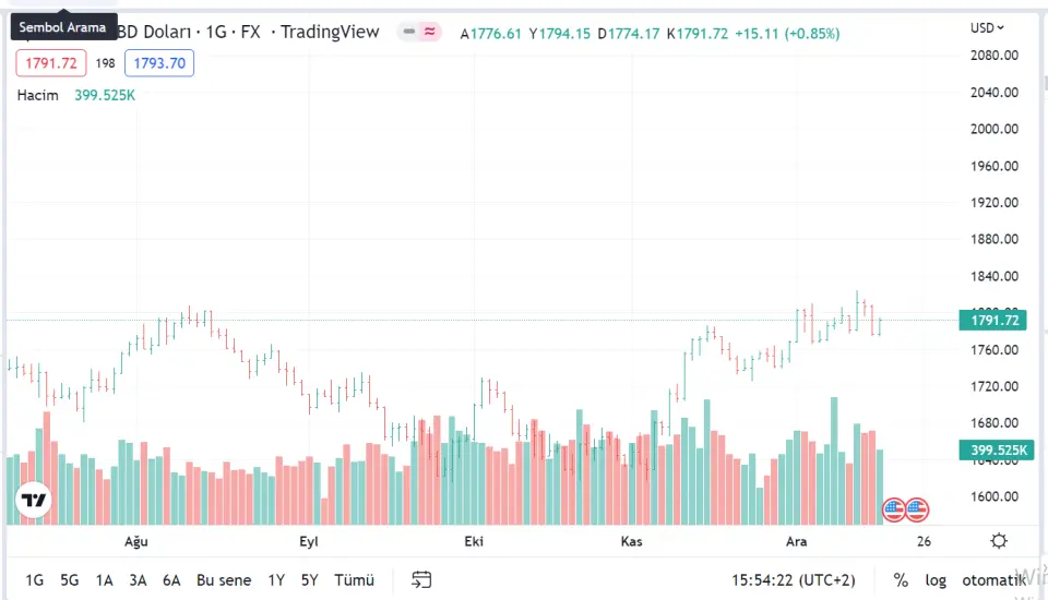 Ons altın ise 1791 dolar. Ons altın, cuma gününü 1793 dolardan tamamlamıştı.