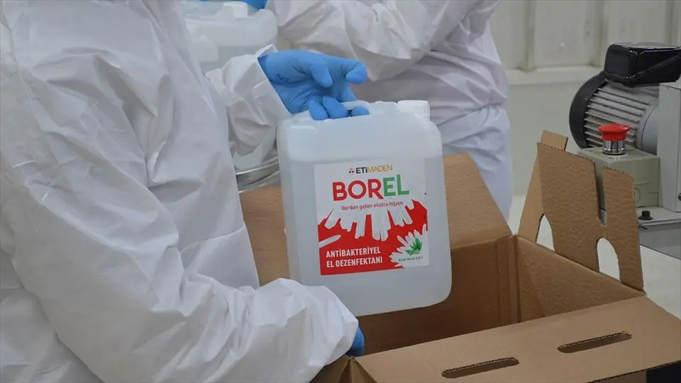 İZMİR(AA) - Enerji ve Tabii Kaynaklar Bakanlığına bağlı Eti Maden İşletmeleri Genel Müdürlüğünce üretilen ve nisandan itibaren çok sayıda tüketiciye ulaşan yerli ve milli bor katkılı dezenfektan BOREL'in 1 ve 5 litrelik boyutları da piyasaya sunuldu.