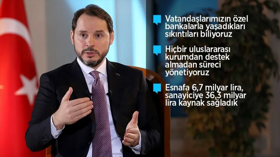 "Vatandaşlarımızın özel bankalarla yaşadıkları sıkıntıları biliyoruz"Albayrak, özel bankaların bu süreçteki faaliyetlerine yönelik de değerlendirmelerde bulunarak, "Vatandaşlarımızın özel bankalarla yaşadıkları sıkıntıları biliyoruz. Bu dönemde vatandaşlara destek olmayı geçtik, mevduatını bozdurana, kredisini yapılandırmak isteyene fahiş maliyetler çıkarıldığını duyuyoruz. Bu asla kabul edebileceğimiz bir şey değil. Bu konunun titizlikle üzerine gideceğimizin bilinmesini isteriz." ifadelerini kullandı.