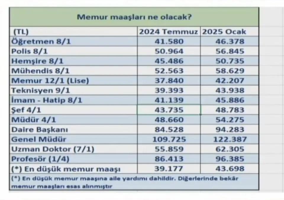narak Temmuz-Aralık dönemine ait 6 aylık enflasyon farkı %15,75 olarak hesaplanırken, memur maaşlarına yapılacak zam oranı %11,54 olarak belirlendi. Zam oranlarının açıklanması, özellikle maaş artışlarının enflasyon oranının altında kalması nedeniyle tartışma yarattı.