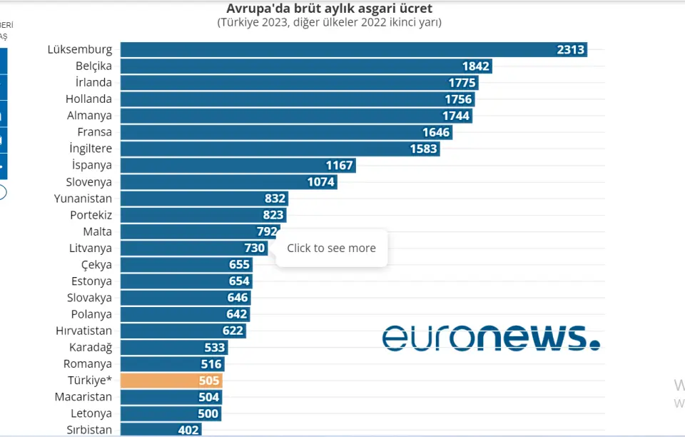 Türkiye 2023 asgari ücret sıralamasında, Avrupa'da ne durumda