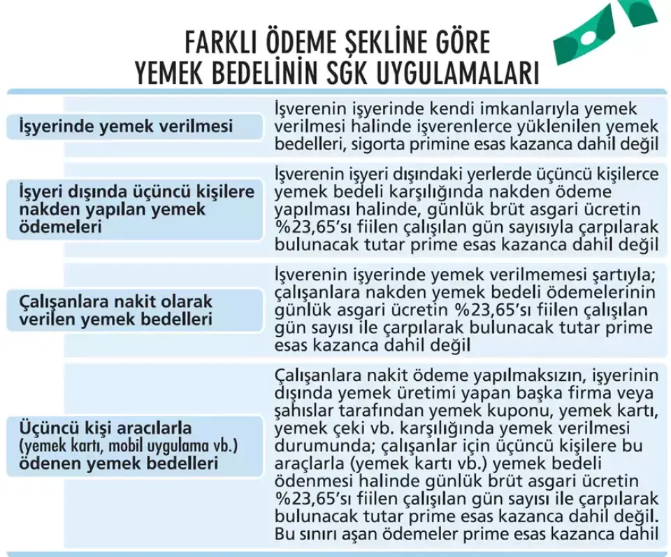 İSTİSNA YEMEK BEDELİ VE SGK UYGULAMASI