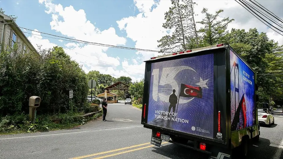 NEW YORK (AA) - Dijital ilan kamyonları ve sivil araçlardan oluşan konvoy, gün boyu, elebaşı Gülen’in bulunduğu Pensilvanya’daki çiftliğin önünde tur atarak hain darbe girişimini protesto etti.