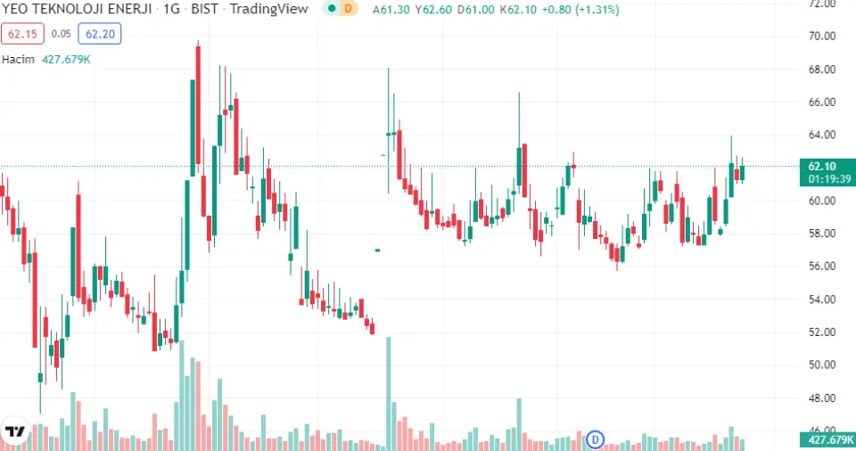 Hisse haber yazımı esnasında 62.10 TL'den değer görüyor.