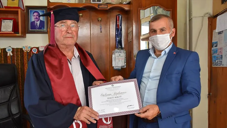 TRABZON(AA) - Trabzon'da yaşayan 81 yaşındaki Halit Macit, 2 yıllık İstanbul Yıldız Teknik Okulu ile Ankara Yüksek Teknikerlik Okulu'ndan önlisans diplomalarını alarak mezun oldu.