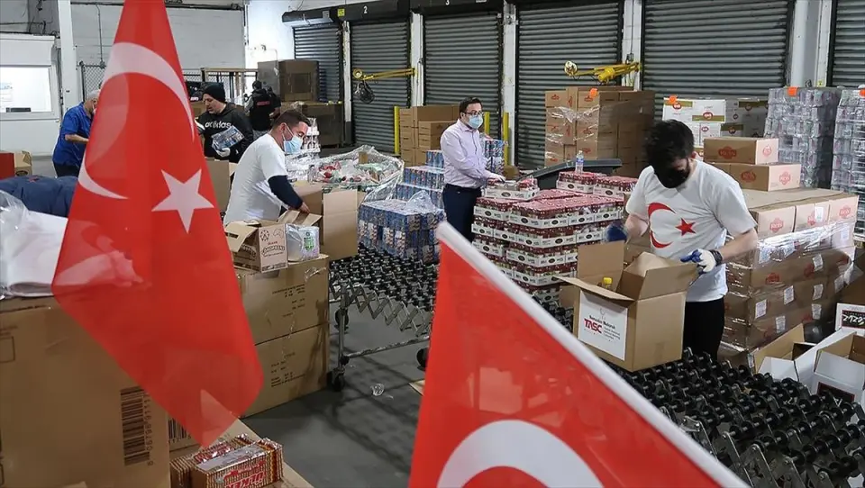 ABD New Jersey'deki Türk gıda şirketi Vintage Food Corporation'ın sponsorluğunda bir ailenin yaklaşık bir aylık temel ihtiyacını karşılayacak gıda kolileri, TASC yetkilileri ve gönüllüler tarafından paketlendi.