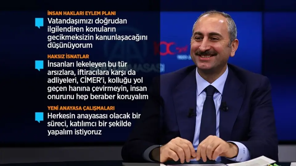 "Bu anlamda felsefesi, ruhu da bu bilinçli bir tercihtir, insan haklarına dayalı olması. Bu anlamda mevcut şeylerle ilgili toplum değişiyor, hukuk da değişecek, yaşayan hukuk yaklaşımıyla toplumun sorunlarını çözmek zorunda. Yapılan tüm iyi uygulamalarla beraber ilave hangi husus var bunun hukuk toplumunun gerisinde kalmaması lazım, toplumu zorlaştırmaması lazım, işlemleri kolaylaştırması lazım. Bu anlamda bir misyonla insan hakları eylem planı ortaya kondu."
