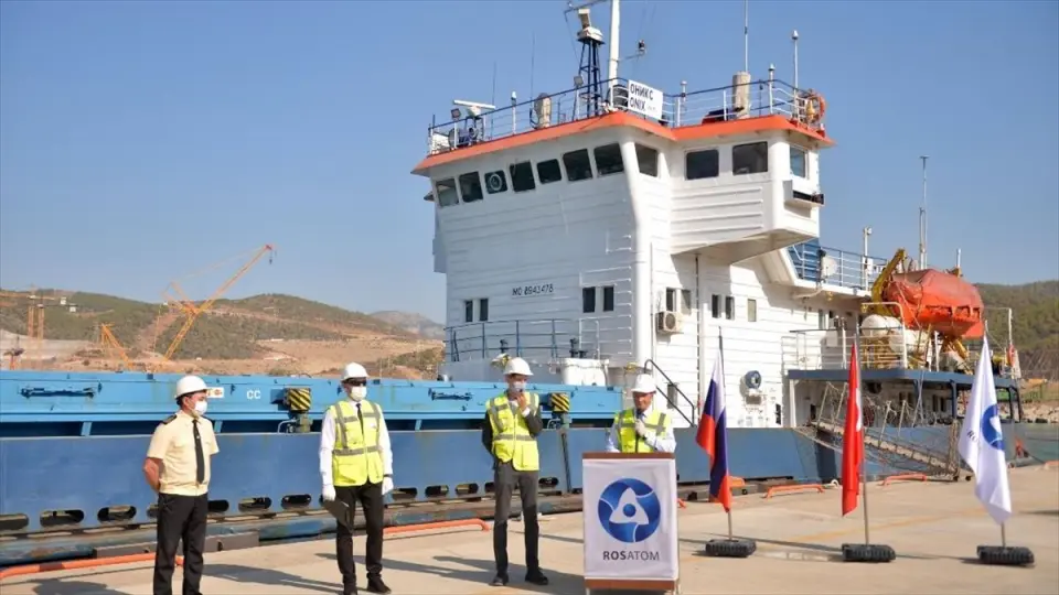 MERSİN (AA) - Rusya Devlet Atom Enerjisi Kurumu Rosatom'un mühendislik bölümü Atommash tarafından üretilen basınç kabını taşıyan gemi, 3 bin kilometrelik deniz yolculuğunun ardından Akkuyu'daki Doğu Kargo Terminali'ne yanaştı.