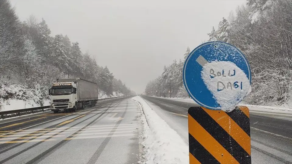 DÜZCE (AA) - Türkiye'nin önemli geçiş güzergahlarından Anadolu Otoyolu'nun Bolu Dağı Tüneli ve Elmalık mevkisinde dün akşam başlayan kar yağışı gün boyunca aralıklarla devam etti.