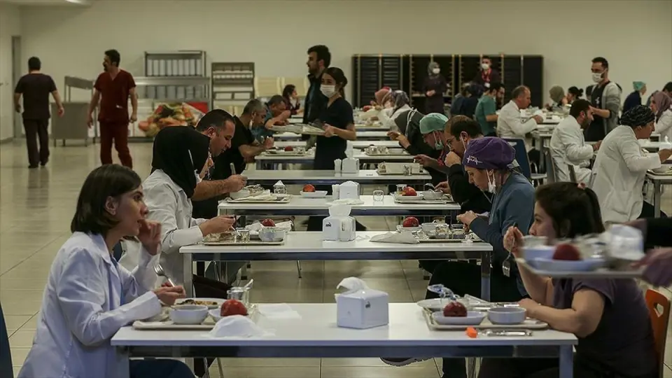 Ankara Şehir Hastanesi İdari Amiri Ferhat Şahin Kaya, AA muhabirine yaptığı açıklamada, personelin yemek alırken ve yerken sosyal mesafe kuralına uyabilmesi için yemekhaneyi düzenlediklerini belirtti.