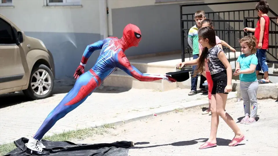 Mutlulukları gözlerine yansıyan çocuklar ise "Örümcek Adamı görünce çok heyecanlandık. Televizyonlardan gördüğümüz Örümcek Adam, bizi çok eğlendirdi. Evde kaldığımız şu günlerde bizi çok eğlendirdi. Onu çok seviyoruz." dediler.