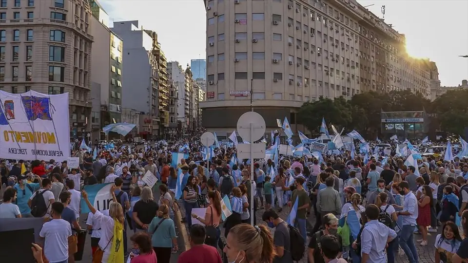 Muhalefet yanlılarının çağrısıyla başkent Buenos Aires'in merkezindeki Obelisco dikilitaşında toplanan yüzlerce kişi, Arjantin Devlet Başkanı Alberto Fernandez hükümetine ve Kovid-19 salgınının ülkede yükselişe geçmesinin ardından alınan önlemlere karşı gösteri düzenledi.