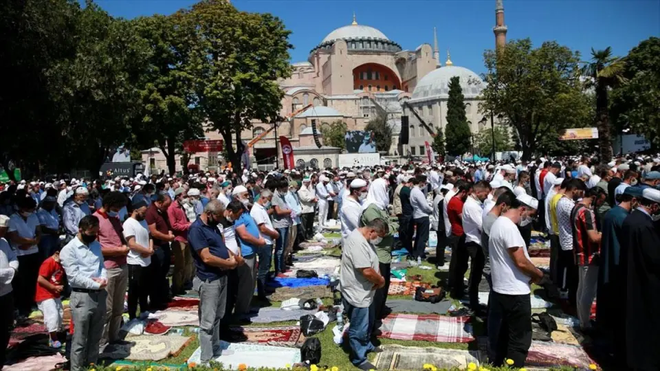 İSTANBUL (AA) - İstanbul'un fethine kadar 916 yıl kilise, 1453'ten 1934'te alınan kararla müze oluncaya dek cami olarak kullanılan, 86 yıl müze olarak hizmet veren Ayasofya'nın yeniden ibadete açılması dolayısıyla Diyanet İşleri Başkanlığınca dua programı düzenlendi.
