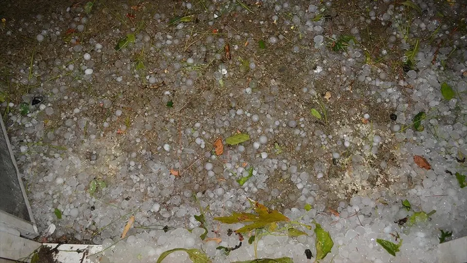 Ceviz büyüklüğündeki dolu, eski otogardaki iş yerlerinin camlarında hasara neden oldu.