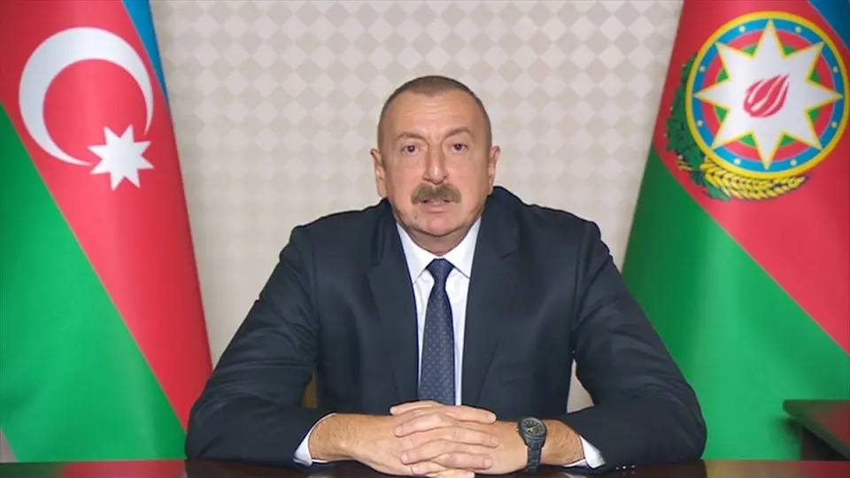 Azerbaycan Cumhurbaşkanlığından yapılan açıklamaya göre Aliyev, Ermenistan'ın Azerbaycan'ın sivil yerleşim birimlerine yaptığı saldırılardan bahsederek "vahşi bir düşman"la karşı karşıya olduklarını belirtti.