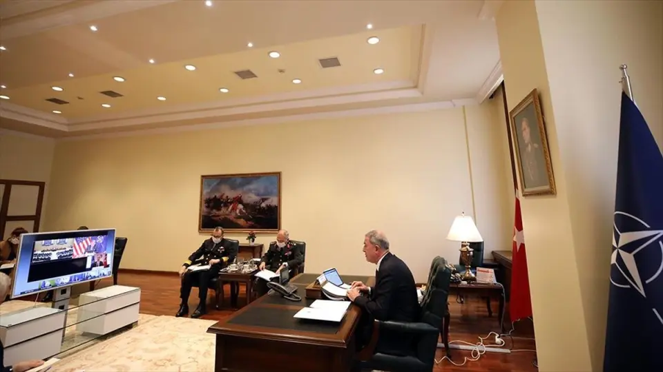 ANKARA (AA) - Milli Savunma Bakanı Hulusi Akar, yeni tip koronavirüs (Kovid-19) ile mücadele kapsamında video konferans yöntemiyle gerçekleştirilen NATO Savunma Bakanları Topl...