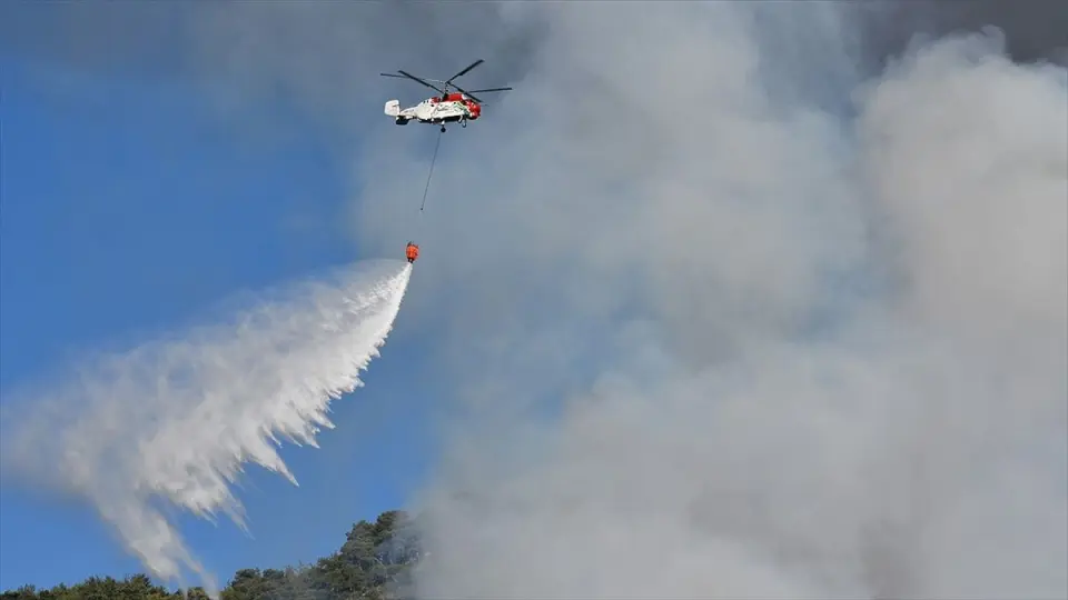 "Yangına 7 helikopter, 64 arazöz, 2 ilk müdahale aracı, 11 dozer ve 250 söndürme işçisi ile müdahalemiz sürüyor. Aydın Çine Akçova yangını ise saat 12.26'da başladı, ilk müdahale saat 12.36'da yapıldı. Yangına 1 uçak, 10 helikopter 40 arazöz, 5 ilk müdahale aracı, 4 dozer ve 180 söndürme işçisi ile müdahalemiz devam ediyor. Akçaova, Çamönü, Kemalpaşa ve Ahmetli yangınlarını kontrol altına alma çalışmaları devam ediyor. Karadan ve havadan, ekiplerimiz çalışmalarını sürdürüyorlar."