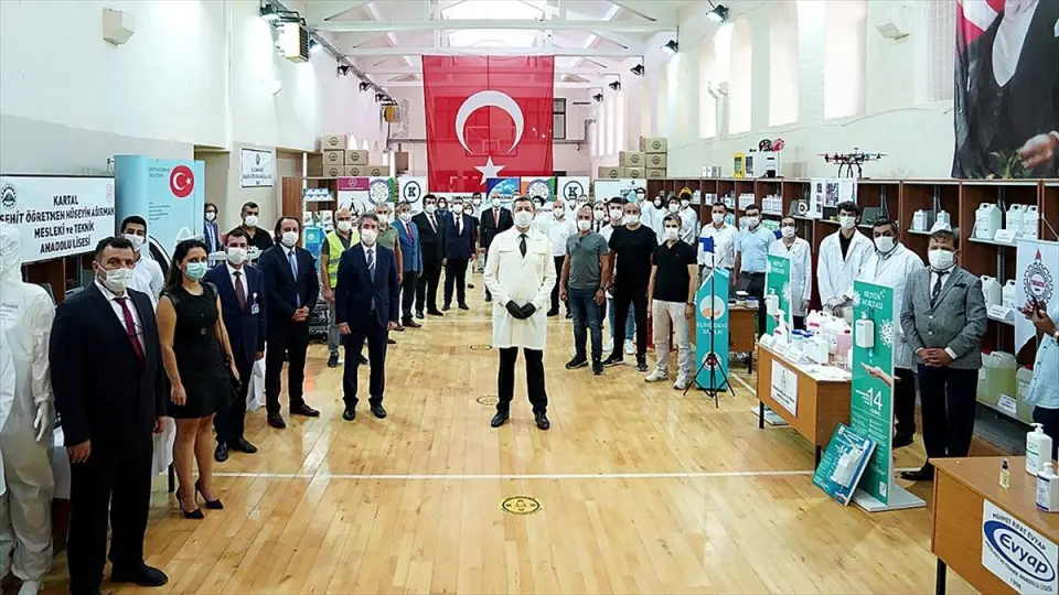 Gaziosmanpaşa Küçükköy ve Mesleki ve Teknik Anadolu Lisesi ile Sultanahmet Mesleki ve Teknik Anadolu Lisesi başta olmak üzere yaklaşık 10 okulumuza kurularak günlük üretim kapasitesi 50 bin adetten 500 bin adede yükseltildi. Ayrıca bu süreçte mesleki ve teknik ortaöğretim kurumlarımızdaki öğretmenlerimiz tarafından 3D yazıcı, dezenfektan kabini, ateş ölçer, solunum cihazı, video laringoskop cihazı, ultraviyole hava sterilizasyon cihazı, otomatik el dezenfekte istasyonu, sosyal mesafe cihazı, ozon hava dezenfekte cihazı geliştirildi. Bu üretim kapasitesini farklı bir boyuta taşımak için de Ar-Ge projesi başlatıldı. Üretim kapasitesi ve altyapısı uygun olan okullarda artık üretim süreci fikri mülkiyet süreci ile birleşti. Bu okullarımız artık patent, faydalı model, tasarım ve marka üretimi ve tesciline odaklandılar. Üretim ve Ar-Ge çalışmaları devam eden tüm bu ürünlerin bir kısmı Sultanahmet Mesleki ve Teknik Anadolu Lisesinde bir araya getirildi. Atölyeler ülkemizde mesleki eğitimin salgın sürecindeki performansını dahası mesleki eğitimde hedefler doğrultusunda yapılanları kapsamlı bir şekilde görme imkanı sundu. Üretilen ürünler, mesleki eğitimde paradigma değişiminin ve Türkiye'de mesleki eğitimin yakaladığı başarı hikayesinin altında hep beraber azim ve kararlılıkla çalışmanın yattığını bir kere daha ortaya koydu."