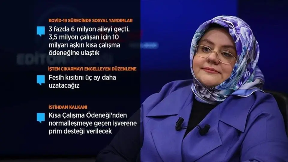 Selçuk, "600 gün prim gün şartı sayısını 450 güne, 120 gün olan hizmet akdine bağlı olma şartını 60 güne indirdik. İşverenlerin 450 günü ve 60 günü tamamlayan bütün çalışanları adına başvurmalarını talep ettik. Günün sonunda şu anda baktığımız zaman neredeyse 3,5 milyon çalışanımız için 10 milyar lirayı aşkın bir kısa çalışma ödeneğini ulaştırmış durumdayız. O süreçler de devam ediyor çünkü 3 aylık periyotlarla alıyorlar." diye konuştu.