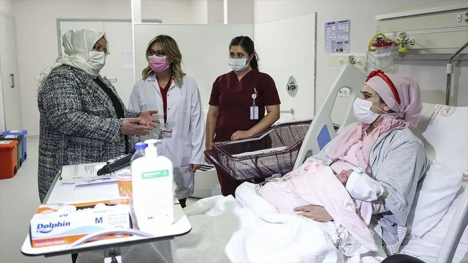 Bakan Selçuk, ardından saat 00.05'te normal doğumla 3 kilogram 740 gram olarak dünyaya gözlerini açan erkek bebek Miraç'ın annesi Tevriz Kesekler'e ziyarette bulundu.