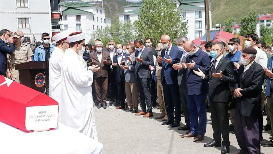 Şehidin çocukları Ayşenur, Rabia, Yusuf Samet ve Asiye Pullu ile akrabalarının ve yakınlarının bulunduğu defin sırasında, şehidin mezarı başında saygı atışı yapıldı.