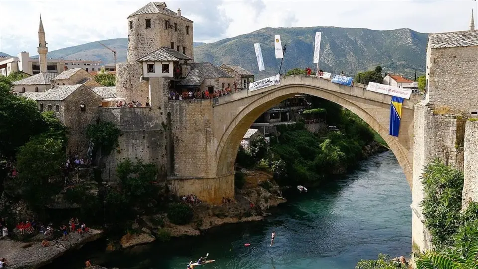 Mimar Sinan'ın öğrencisi Mimar Hayrettin tarafından 1566'da inşa edilen tarihi Mostar Köprüsü'nde düzenlenen atlama yarışlarında, 32 sporcu kendini 28 metre yükseklikten Neretva Nehri'nin zümrüt yeşili sularına bıraktı.