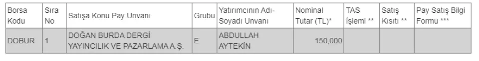 İşte o şirket: DOĞAN BURDA DERGİ YAYINCILIK VE PAZARLAMA A.Ş
