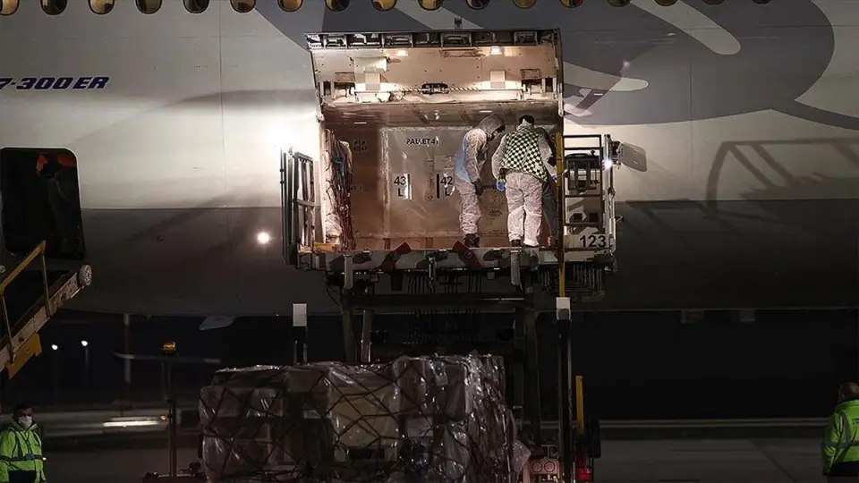 Çin'in başkenti Pekin'deki havalimanından gece saatlerinde hareket eden uçağın İstanbul'a inişiyle aşıların bulunduğu konteynerler, gümrük işlemlerinin ardından uçaktan alınarak depolara taşınmaya başlandı.