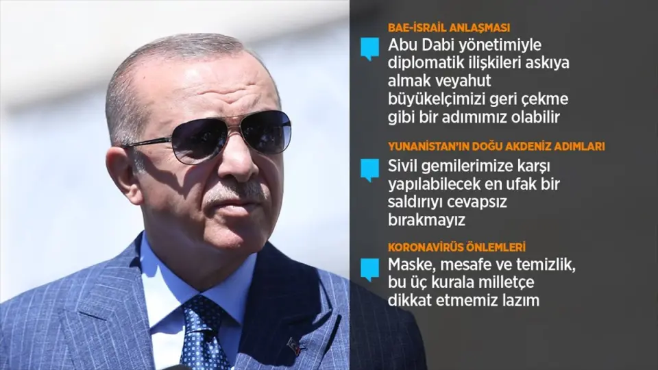 Cumhurbaşkanı Erdoğan: (BAE-İsrail anlaşması) Abu Dabi ile diplomatik ilişkileri askıya alabiliriz