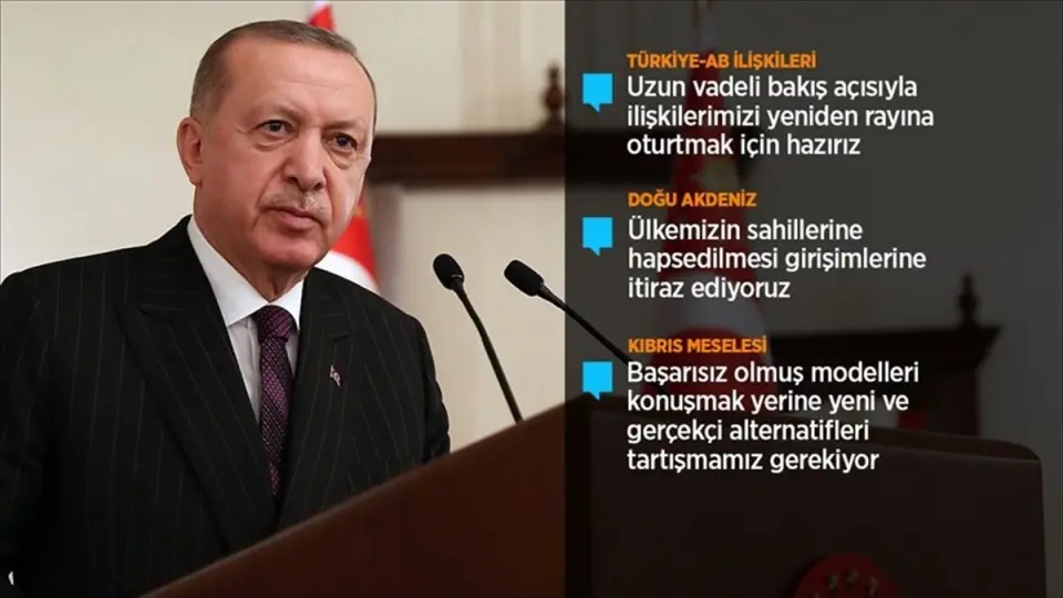 "Son yıllarda, hava sahası ihlallerini ve gayri askeri statüdeki adalarda özellikle hukuka aykırı faaliyetlerini artıran Yunanistan'ı gerginliği tırmandırıcı faaliyetlerinden vazgeçmeye davet ediyoruz. Komşumuz Yunanistan ile 25 Ocak'ta başlayacak istikşafi görüşmelerin inşallah yeni bir dönemin habercisi olacağına inanıyorum. AB'nin hem bu konularda hem de Kıbrıs meselesinde samimi bir özeleştiri yapması gerekiyor. AB, Kıbrıs'ta 2004 yılında çözüme 'hayır' diyen Rum tarafını tam üyelikle ödüllendirirken, referanduma 'evet' diyen Kıbrıs Türküne verdiği taahhütleri unutmuştur. Bunları da yerine getirmesini bekliyoruz. Son dönemde, AB'nin Kıbrıs Türk tarafıyla üst düzey hiçbir teması olmamıştır. Hal böyleyken AB, Kıbrıs meselesinin çözümünde nasıl kolaylaştırıcı bir rol oynayabilir?"