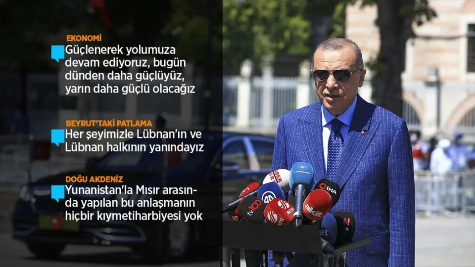 Erdoğan, Lübnan'ın başkenti Beyrut'ta meydana gelen patlamayla ilgili soru üzerine, patlamanın faillerinin henüz belirlenmediğine dikkati çekti.