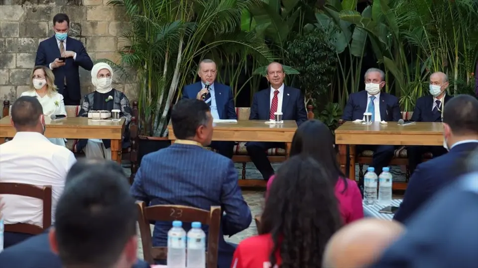"Akif merhumun dediği gibi 'İmandır o cevher ki, ilahi ne büyüktür. İmansız olan paslı yürek, sinede yüktür.' Sizler imanınızla, birikiminizle, azminizle, enerjinizle, kararlılığınızla Türkiye'yi ve Kuzey Kıbrıs Türk Cumhuriyeti'ni hedeflerine ulaştıracaksınız. Gönül sınırlarımız içindeki Kıbrıs'ta verdiğiniz her mücadelede dün nasıl hep yanınızda olduysak, bugün de yarın da yanınızda olacağız. Çünkü bu dava bize Hala Sultan'ın, Lala Mustafa Paşa'nın, Doktor Fazıl Küçük'ün, Rauf Denktaş'ın emanetidir. Türkiye de 20 Temmuz 1974'te işte bu emanete sahip çıkmak için harekete geçti. Bugün de aynı emaneti daha ileriye taşımanın mücadelesini veriyoruz. İnşallah bu mücadele, devraldığımız bu bayrak, sizler devraldığınızda tıpkı büyük ve güçlü Türkiye gibi güçlü olarak Kuzey Kıbrıs Türk Cumhuriyeti'nin inşasını tamamlayacaksınız."