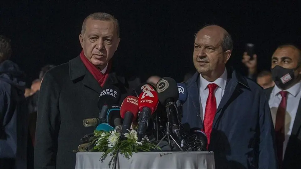 KKTC Cumhurbaşkanı Ersin Tatar'a bu konudaki gayreti ve cesareti sebebiyle teşekkür eden Erdoğan, "Kendisini bu vesileyle tebrik ediyorum ve atılacak adımlarda da her zaman yanında olduğumuzu, Türkiye olarak Anavatan olarak onlarla beraber hareket edeceğimizi de söylemek istiyorum." diye konuştu.