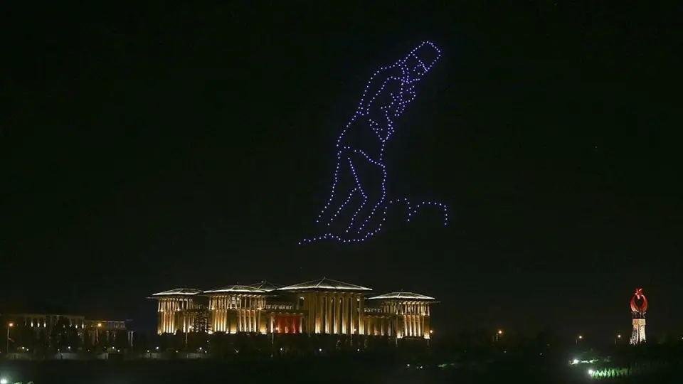 Cumhurbaşkanlığı Külliyesi'nde Zafer Bayramı'na özel 300 İHA ile ışık gösterisi yapıldı