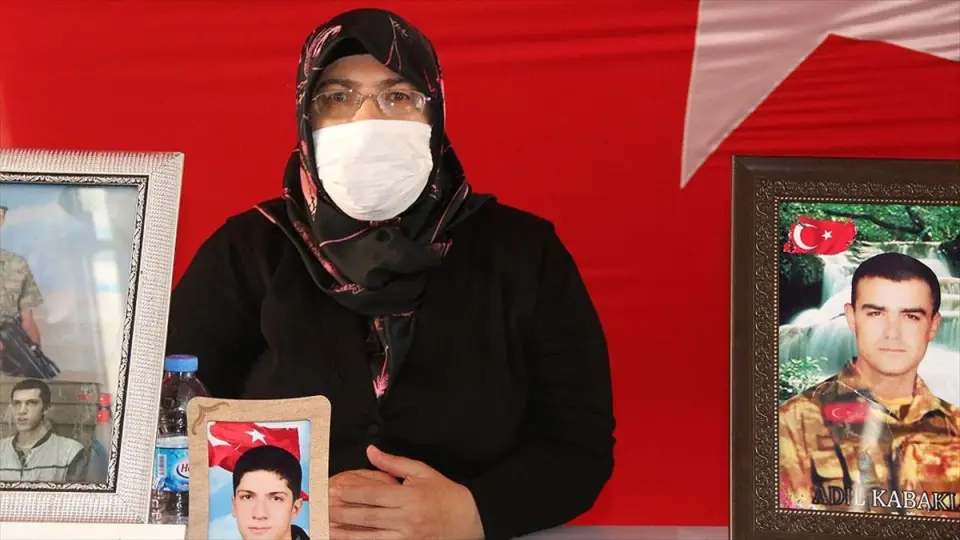 "HDP diyor ki, 'Adalet istiyoruz, Ankara'ya yürüyüş yapacağız'. Eğer HDP adalet istiyorsa gelsinler adalet bu çadırdadır. HDP şimdiye kadar çocukları kandırıp PKK'ya teslim etti. Biz bu çadırda evlatlarımızı istiyoruz. HDP eğer adaletli davranıyorsa gelsinler dağda 10 yaşındaki kız var. Bu çocukların hepsini kandırdılar, götürdüler dağa teslim ettiler. Ellerine silah verdiler. Adalet bu mu? Oğlum gel fırsatını bulursan adalete teslim ol. 13 ailenin çocuğu geldi."