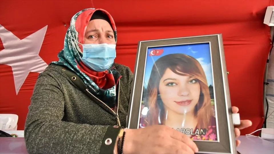 Ellerinde çocuklarının fotoğrafıyla bekleyişini sürdüren annelerden Aydan Arslan, kızı Aysun'a kavuşmak için eyleme devam edeceğini söyledi.