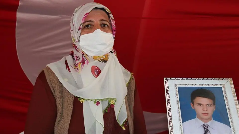 Ellerinde çocuklarının fotoğraflarıyla bekleyişlerini sürdüren annelerden Solmaz Övünç, HDP'nin oğlunu kandırarak terör örgütü PKK'ya verdiğini söyledi.