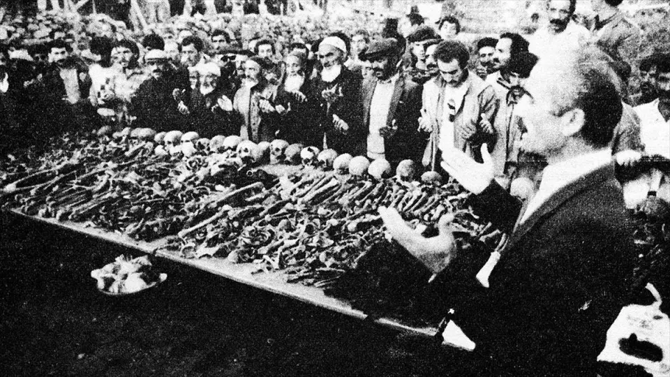 "Ermeni çeteleri tarafından, camiye insanlar doldurulup katledildi. Katliamları yapan kişi Şaumyan'dır. O tarihte, Bakü'yü yerle bir eden bir hadise yaşanmıştır. Yakın tarihte 1990’da 400 insanın şehit düştüğü bir savaş. Rusların desteği ile Bakü'de Ermeniler 400'e yakın insanı katletti. Balkonda çamaşır asan kadını katlettiler, sokakta gezen gençleri üstüne tank sürerek katlettiler. Azerbaycan şehitliklerine girdiğiniz zaman hangi milletten olursanız olun ağlamadan çıkmanız mümkün değil. Türkler, tarihinde şehidi çok olan bir millettir. Emperyalist devletlerin oyununa gelen Ermeniler, tarih boyunca katliamlar yapmıştır."