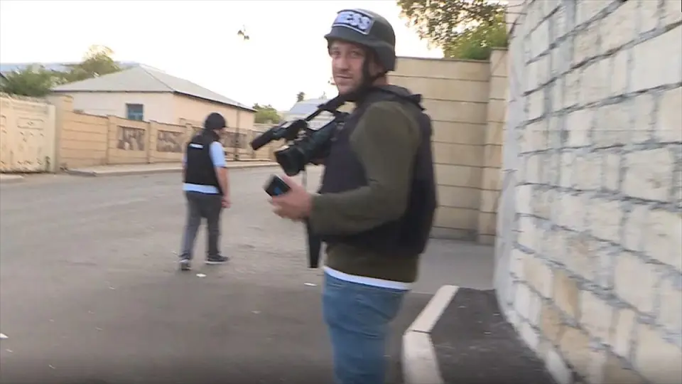 BAKÜ (AA) - Şehirde isabet alan yerleri görüntülemeye çalışan AA, TRT ve İHA ekiplerinin bulunduğu yerin yakınlarına top mermileri düştü. Görün...