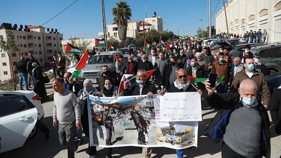 Konuşmaların ardından göstericiler, Pompeo’nun ziyaret etmesi planlanan Psagot Yahudi yerleşim birimine doğru yürüyüşe geçti.