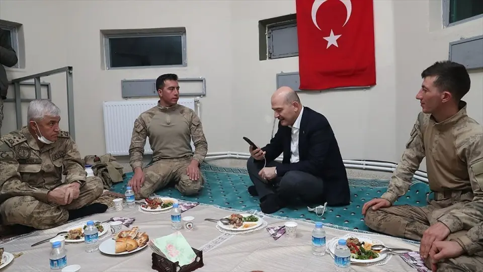 İçişleri Bakanı Soylu yeni yıla Belbuka kalekol üs bölgesindeki askerlerle girdi