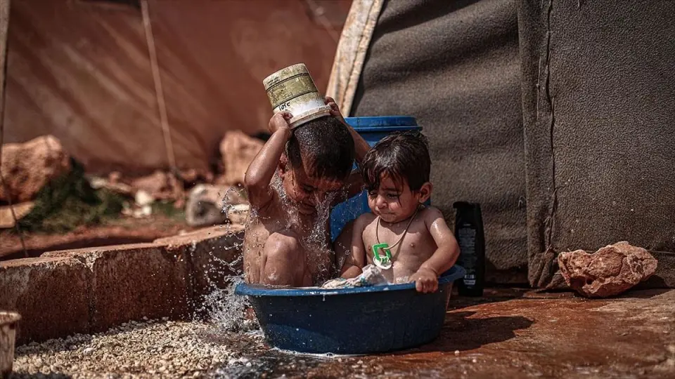İDLİB (AA) - Suriye'nin kuzey batısındaki İdlib ilinde gün içinde 43 dereceye kadar çıkan sıcaklık, çoğunluğu kadın ve çocuğun yaşadığı çadırlarda zor anlara neden oluyor.