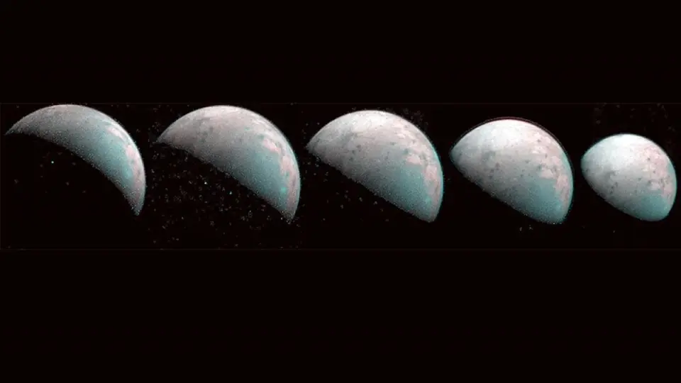 Görüntülerde, Jüpiter'in uydusunda kutup bölgesinde buzun Dünya üzerinde görülmeyen formunu fark etmenin mümkün olduğu ifade edildi.