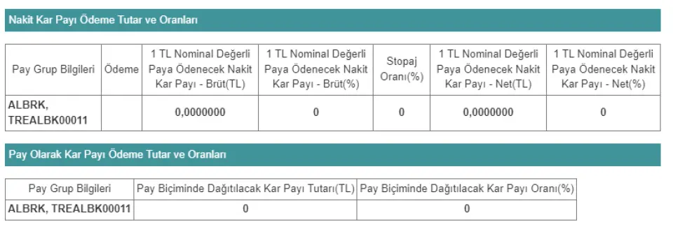 Borsa İstanbul'da işlem gören hisselerden ALBRK temettü dağıtmama kararı verdi. Borsa İstanbul'da işlem gören ALBRK Genel Kurul'da karar verdi. Temettü dağıtmayacak. Karar ne zaman çıktı? Temettü dağıtmayacak. Temettü dağıtmayacak. Dağıtmama kararı