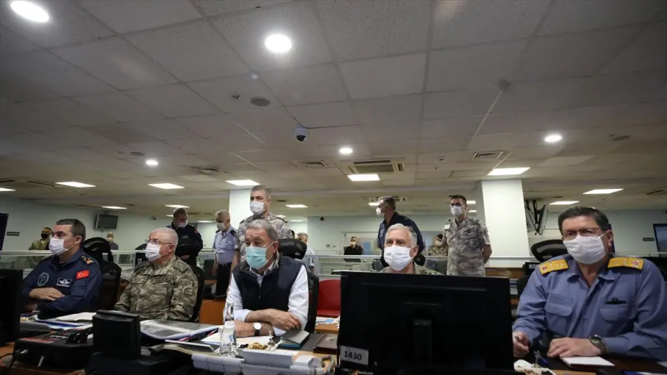 Milli Savunma Bakanı Hulusi Akar ve TSK Komuta Kademesi de yoğun çalışmalarını Bakanlık ve karargahlarda sürdürüyor. Akar, beraberindeki Genelkurmay Başkanı Orgeneral Yaşar Güler, Kara Kuvvetleri Komutanı Orgeneral Ümit Dündar, Hava Kuvvetleri Komutanı Orgeneral Hasan Küçükakyüz ve Deniz Kuvvetleri Komutanı Oramiral Adnan Özbal ile geçen haftanın büyük bölümünü harekat merkezlerinde geçirdi.