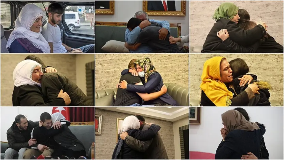 İl Emniyet Müdürlüğü Terörle Mücadele şubesinde anne Sever Fidan, Mardin'de güvenlik güçlerine teslim olan, büyük özlem duyduğu oğlu Tayfur Fidan'a sarıldı. Duygusal anların yaşandığı buluşmada, anne Fidan 17 yaşındayken kaçırılan oğlu Tayfur'u yeniden kavuşmanın sevincini yaşadı.