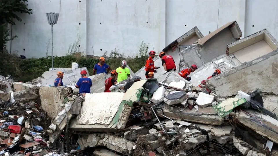 Kastamonu'nun Bozkurt ilçesinde sel nedeniyle yıkılan apartmanda arama kurtarma çalışmaları sürüyor